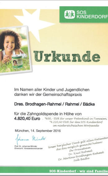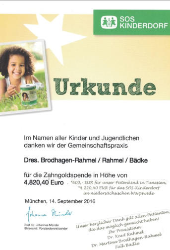 Wir danken unseren Patienten für ihre Spendenbereitschaft.
