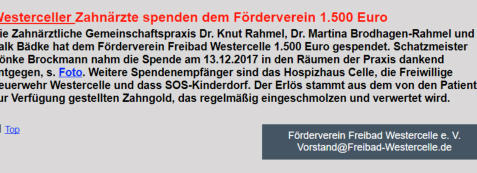 und 2091,36 Euro erhält der Förderverein Freibad Westercelle.