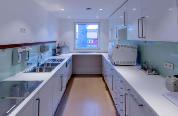 Auf Qualität und Hygiene bei den Arbeitsabläufen in unserer Praxis legen wir Zahnärzte großen Wert. Gerade in der Zahnarztpraxis mit vielen Instrumenten und Geräten spielt Hygiene eine entscheidende Rolle und sollte selbstverständlich sein. Sterilität, Desinfektion, Sauberkeit, Entsorgung, Dokumentation, Wartung und Validierung der Geräte und Wasserhygiene, sind Voraussetzungen für verantwortungs-volle zahnärztliche Behandlungen oder z.B. implantat-chirurgische Operationen.Im Zuge der Praxiserweiterung 2013-2014 haben wir alle Praxisräume auch baulich auf die aktuellen gesetzlichen Anforderungen angepasst. Unser zahnärztliches Team führt die Hygienemaßnahmen für Instrumente und